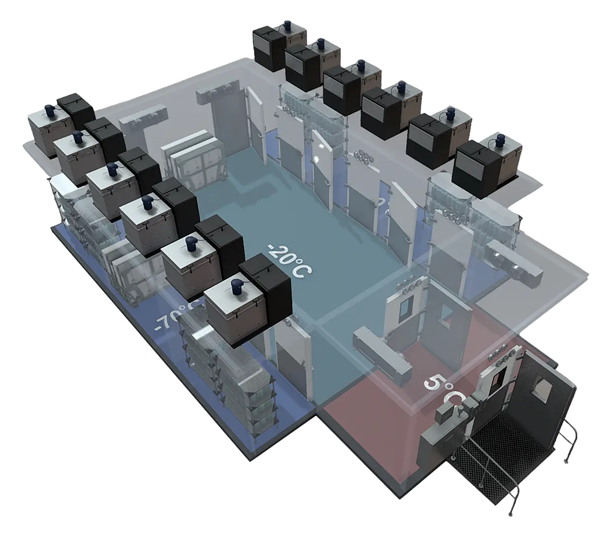 Supports multiple temperature setpoints, configurable to existing building footprint with various options for doors, walls, flooring and more in a single suite.